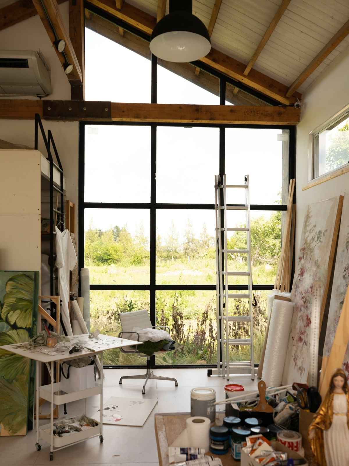 Catalina Ruiz is a visual artist who found the ideal place to create in the countryside. Her studio, surrounded by nature, became both her workspace and her refuge. “My place of inspiration, my everything,” she calls it. It’s where she spends most of her days, connected to the environment and her creative process.